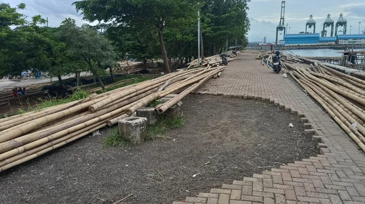 Yudha (49) pengawas tanggul WIKA menyatakan kondisi paving block semakin lama semakin melebar akibat hilang dicuri oleh warga yang tidak bertanggung jawab.