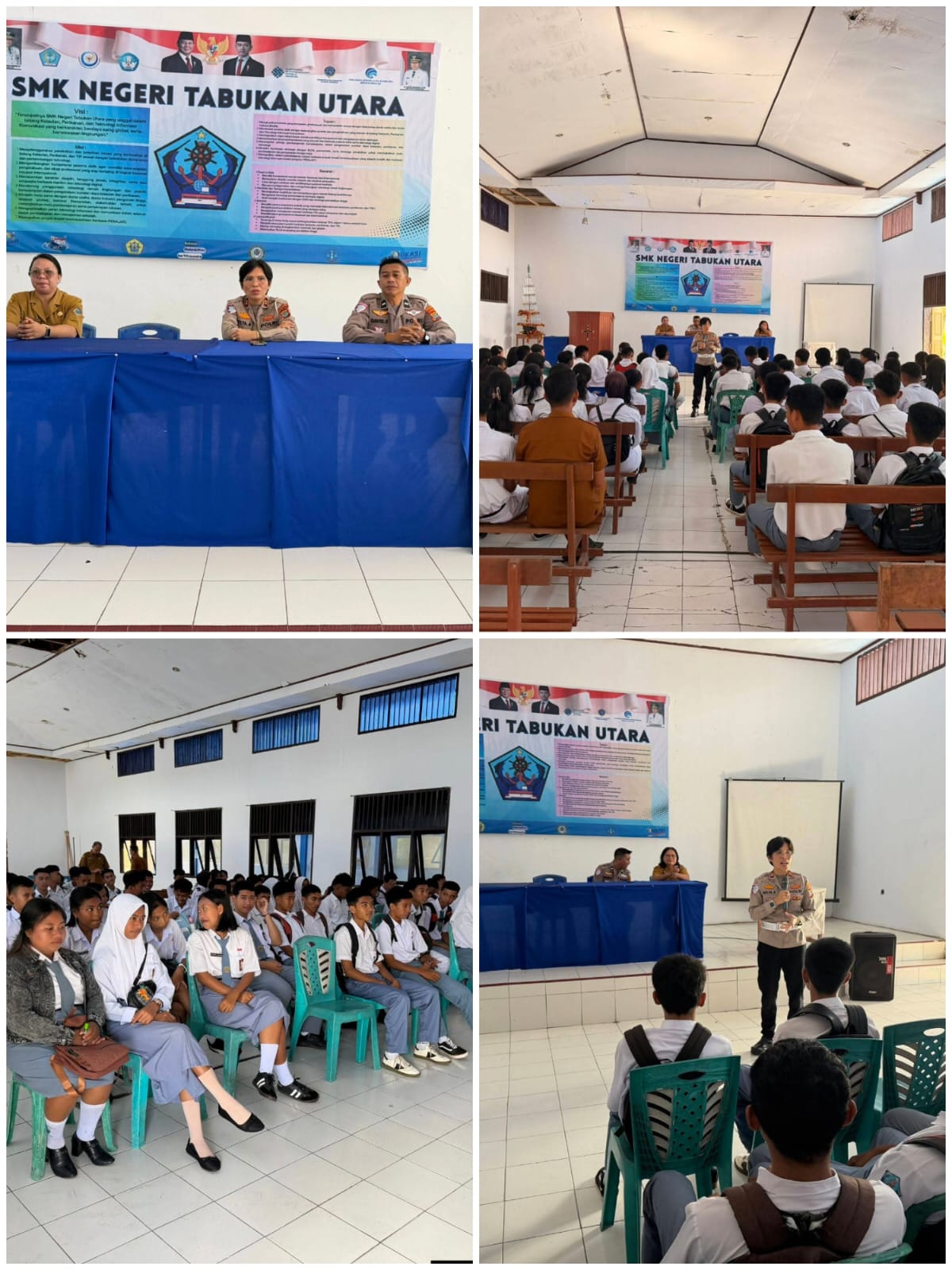 Tabukan Utara, lintasagamanews.com – Satuan Lalu Lintas Polres Kepulauan Sangihe terus mengedukasi generasi muda mengenai pentingnya keselamatan di jalan raya. Hal ini diwujudkan melalui kegiatan sosialisasi dan imbauan tertib berlalu lintas yang dilaksanakan di SMK Negeri Tabukan Utara, Senin (9/3/2026).