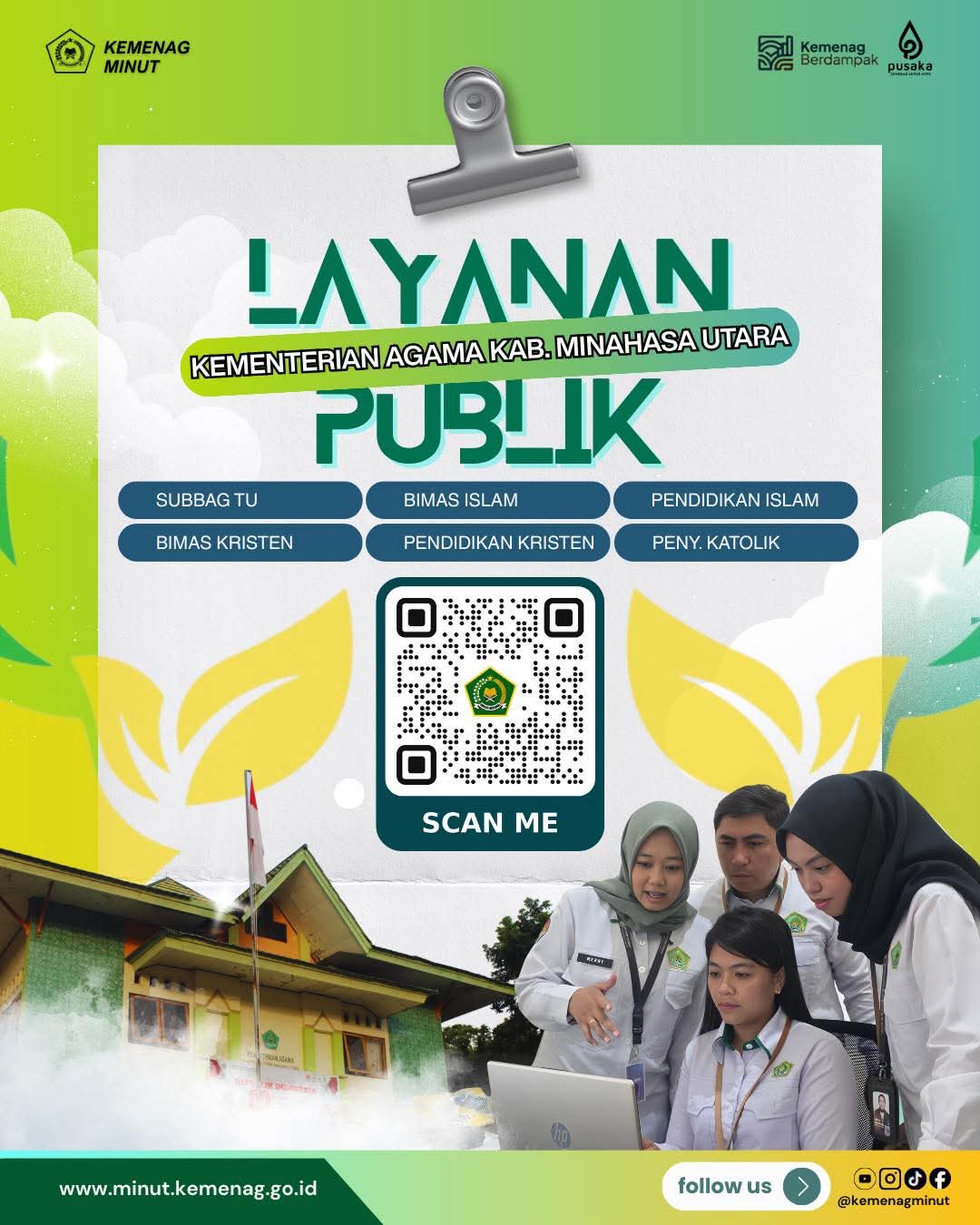 Selain mengintegrasikan layanan secara fisik, Kemenag Minahasa Utara juga menyediakan akses informasi berbasis digital. Masyarakat dapat memperoleh informasi layanan secara lengkap dan terkini melalui pemindaian QR Code yang tersedia pada poster resmi layanan. Informasi tersebut mencakup jenis layanan, prosedur, serta pembaruan kebijakan terkait pelayanan publik.
