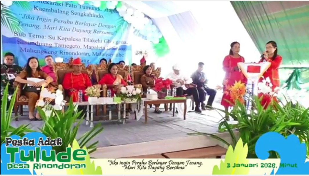 MINAHASA UTARA, LintasAgama.com-Pemerintah Desa Rinondoran bersama seluruh elemen masyarakat menggelar Pesta Adat Tulude Suku Nusa Utara sebagai ungkapan syukur atas penyertaan dan pemeliharaan Tuhan sepanjang tahun 2025 serta doa menyongsong tahun 2026. Kegiatan adat tahunan ini dilaksanakan pada Selasa, 3 Februari 2026, bertempat di Jaga 4, Desa Rinondoran, Kecamatan Likupang Timur, Kabupaten Minahasa Utara, mulai pukul 13.00 WITA.