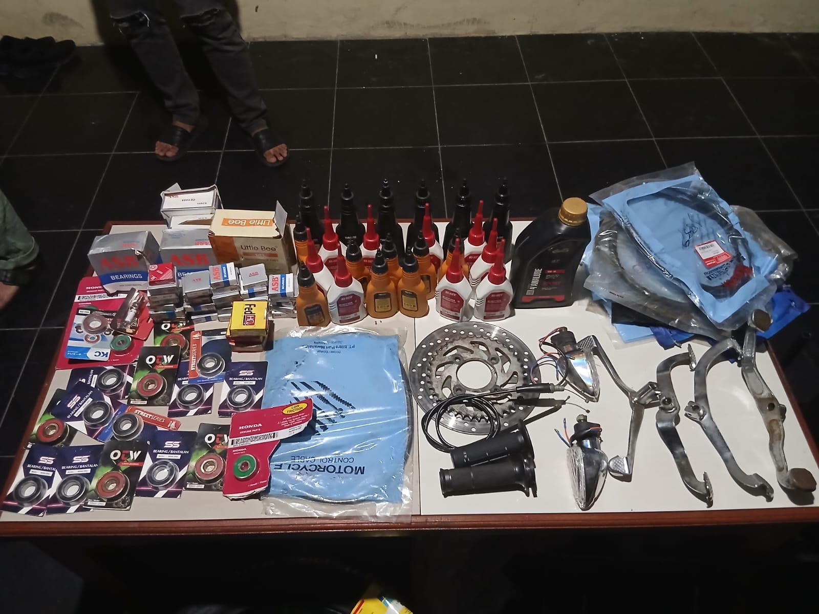 Dalam pengungkapan kasus ini, polisi turut mengamankan puluhan barang bukti, di antaranya dua unit sepeda motor, satu bilah senjata tajam, televisi, ban motor, spare part kendaraan, peralatan bengkel, serta berbagai perlengkapan rumah tangga.