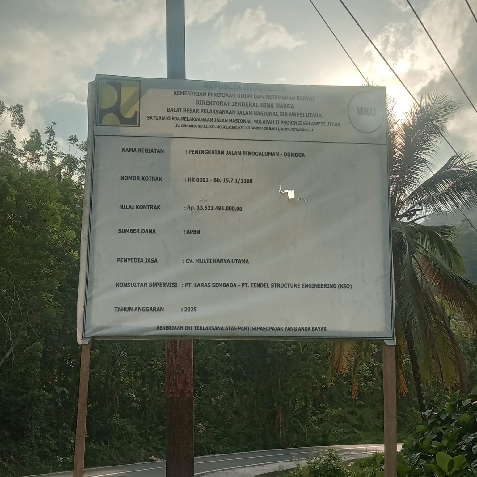 Selain itu, pelaksanaan proyek BPJN itu sendiri dipertanyakan. Meski bernilai lebih dari Rp13 miliar, estimasi penyelesaian fisik pekerjaan hanya sekitar 30 persen. Kejanggalan lain terlihat dari papan nama proyek (plank proyek) yang tidak mencantumkan jangka waktu pelaksanaan, suatu hal mendasar yang diatur dalam prosedur pengadaan yang transparan. Proyek yang dikerjakan oleh CV Multi Karya Utama ini dinilai jauh dari prinsip akuntabilitas.