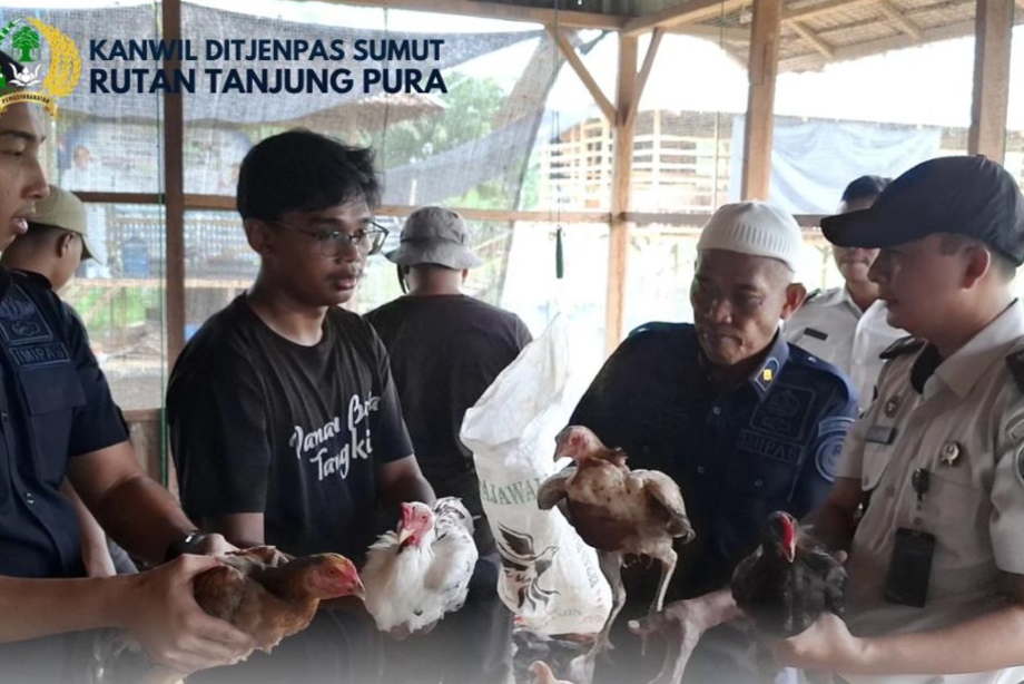 Langkat, Lintasagamanews.com- Rumah Tahanan Negara Kelas IIB Tanjung Pura kembali menorehkan capaian positif dalam pengelolaan program pemberdayaan ekonomi produktif di lingkungan lembaga pemasyarakatan. Rutan Tanjung Pura berhasil melaksanakan kegiatan panen ayam kampung yang dikelola dari lahan peternakan milik Rutan yang berlokasi di Ketapang. Kegiatan ini disambut dengan antusias oleh seluruh jajaran pimpinan dan pegawai, serta menjadi bukti nyata bahwa program pemberdayaan yang dijalankan secara konsisten mampu memberikan hasil yang optimal dan memberikan kontribusi positif bagi lembaga. Kamis (16/04)