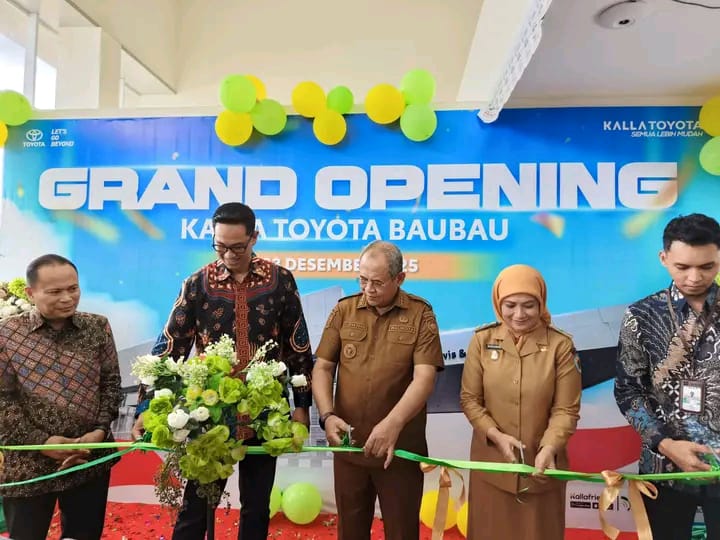 Baubau, Lintasagamanews.com Wali Kota Baubau H Yusran Fahim, SE didampingi Wakil Wali Kota Baubau Ir Wa Ode Hamsinah Bolu, M.Sc secara resmi membuka (grand opening) diler terbaru Kalla Toyota yang berlokasi di Kelurahan Bukit Wolio Indah Kecamatan Wolio pada Selasa (23/12/2025). Acara peresmian ini dihadiri oleh jajaran Kalla Group, pejabat pemerintah daerah, serta mitra bisnis dan pelanggan setia.