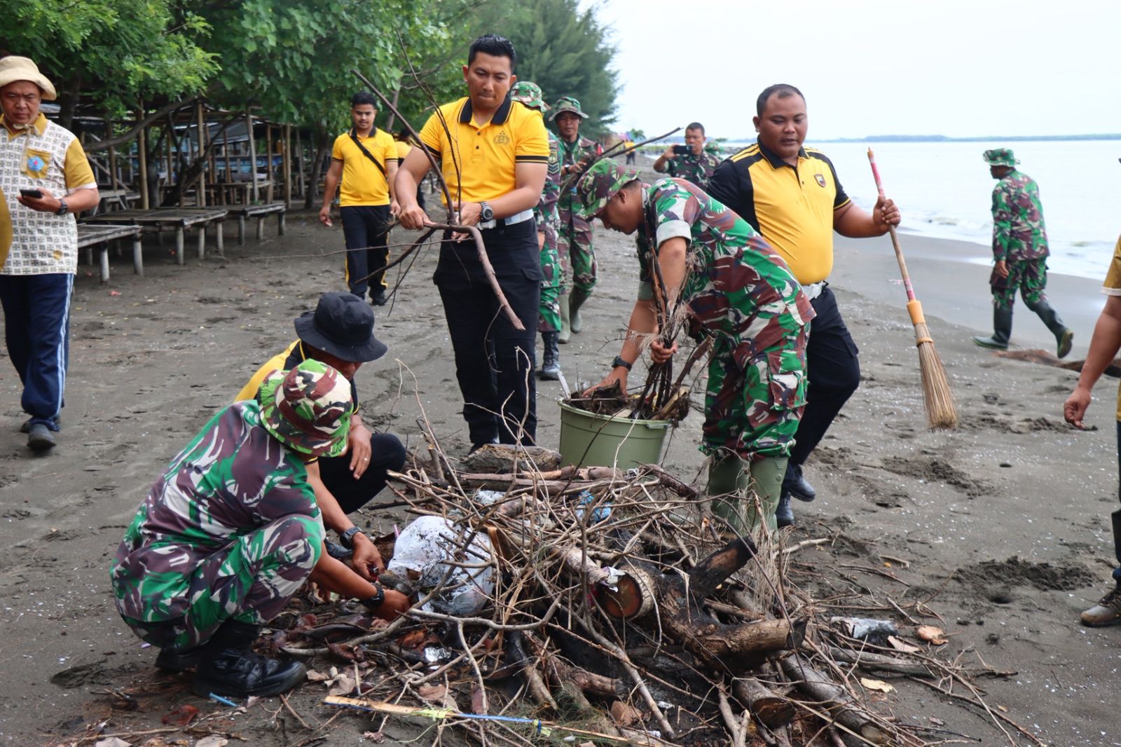 Wujudkan Indonesia Asri, Sinergitas TNI-Polri Kompak Bersihkan Pantai Randusanga Indah